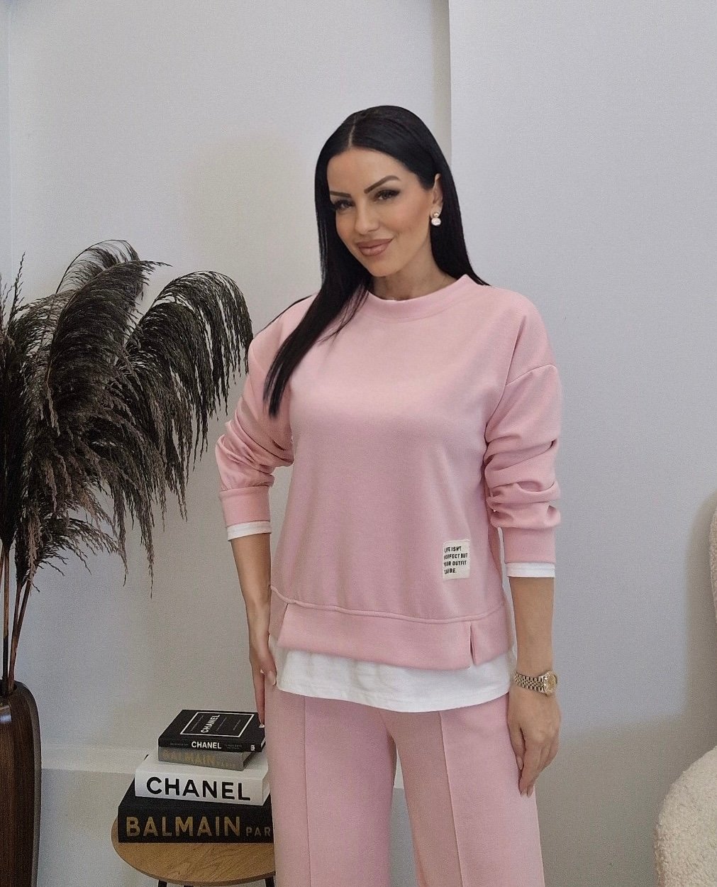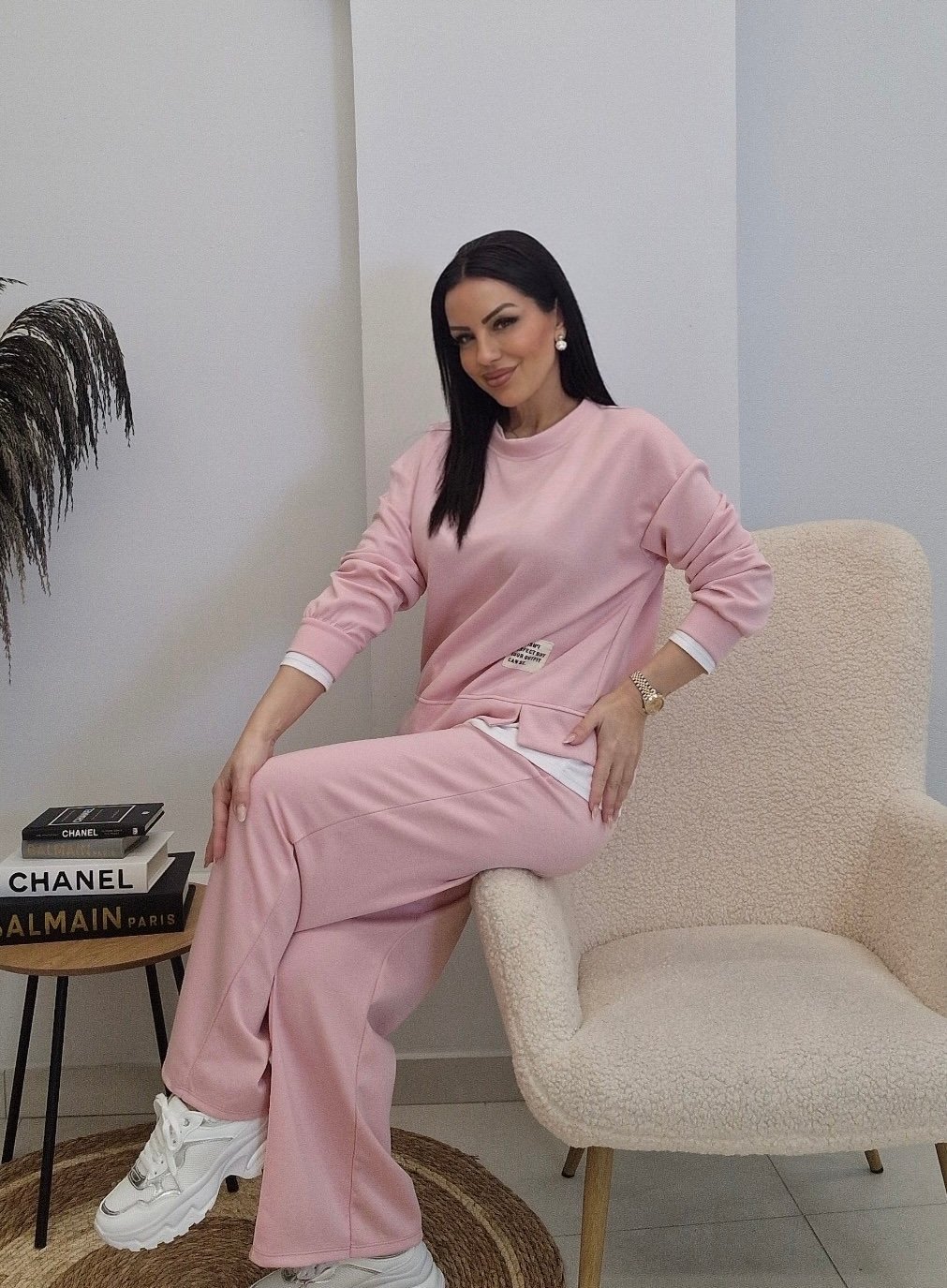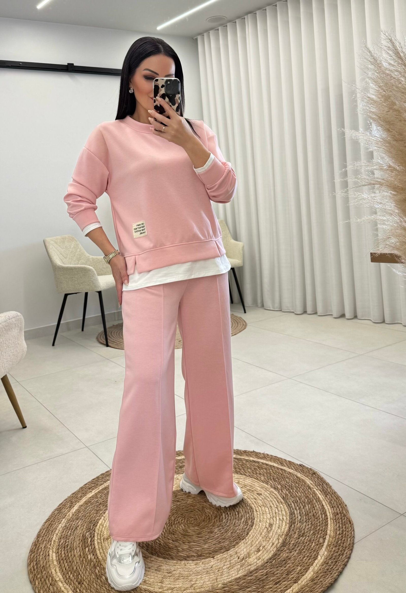 Set viscose ελαστικες φόρμες ONE SIZE.Καλύπτει μέχρι 130cm στήθος, 130cm μέση και 140cm περιφέρεια . Το παντελόνι έχει λάστιχο και κορδονι στη μέση και διαθέτει τσέπες. Η μπλούζα έχει λεπτομέρειες από λευκό ύφασμα στο λαιμό στα μανίκια και στο τελείωμα.