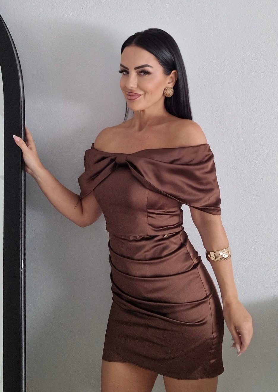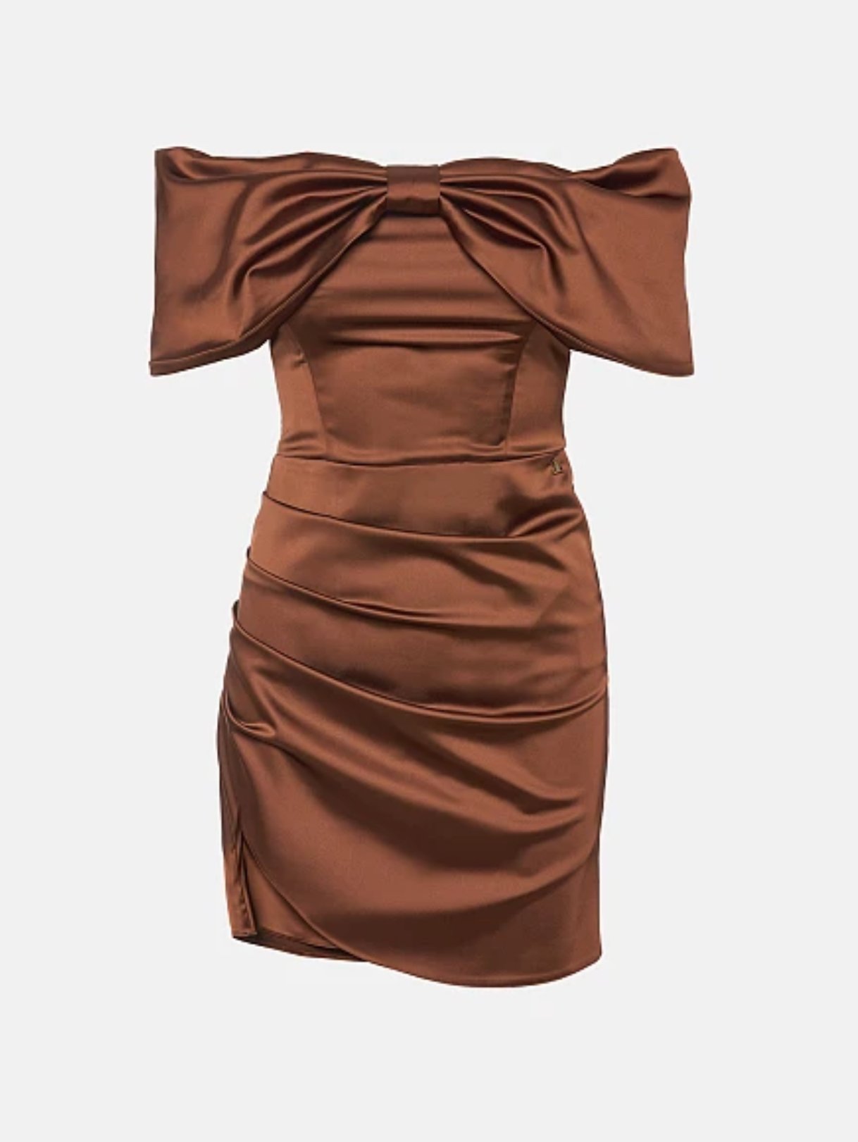 Στράπλες φόρεμα σε σατέν όψη με φιόγκο ποσότητα
